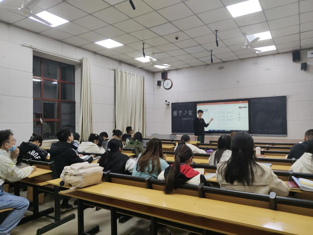 为加强同学们的相关学习、学术经验交流,促进成员更好、更快地融入社团环境,快猫视频 《论语》研修学社成功举办“春诵夏弦——国学沙龙之经典阅读活动”。本次活动在4月14日晚间,于老文史楼215教室举行,学社邀请三位本专业的优秀学长与同学们作学习与学术经验的分享、交流,由来自22级国学班的常景剀同学主持。