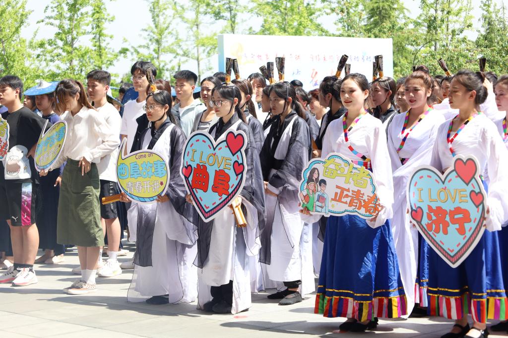 5月22日,快猫视频 、济宁学院、济宁医学院、济宁职业技术学院、山东理工职业学院等校的青年教师、学生代表等共约200人相聚于孔子博物馆南广场,参加由中共济宁市委网信办、共青团济宁市委举办的“济宁故事青春开讲”网络主题宣传活动的启动仪式。我校团委副书记李玲出席了本次活动并代表学校致辞,快猫视频 书简舞团队全体成员参加。