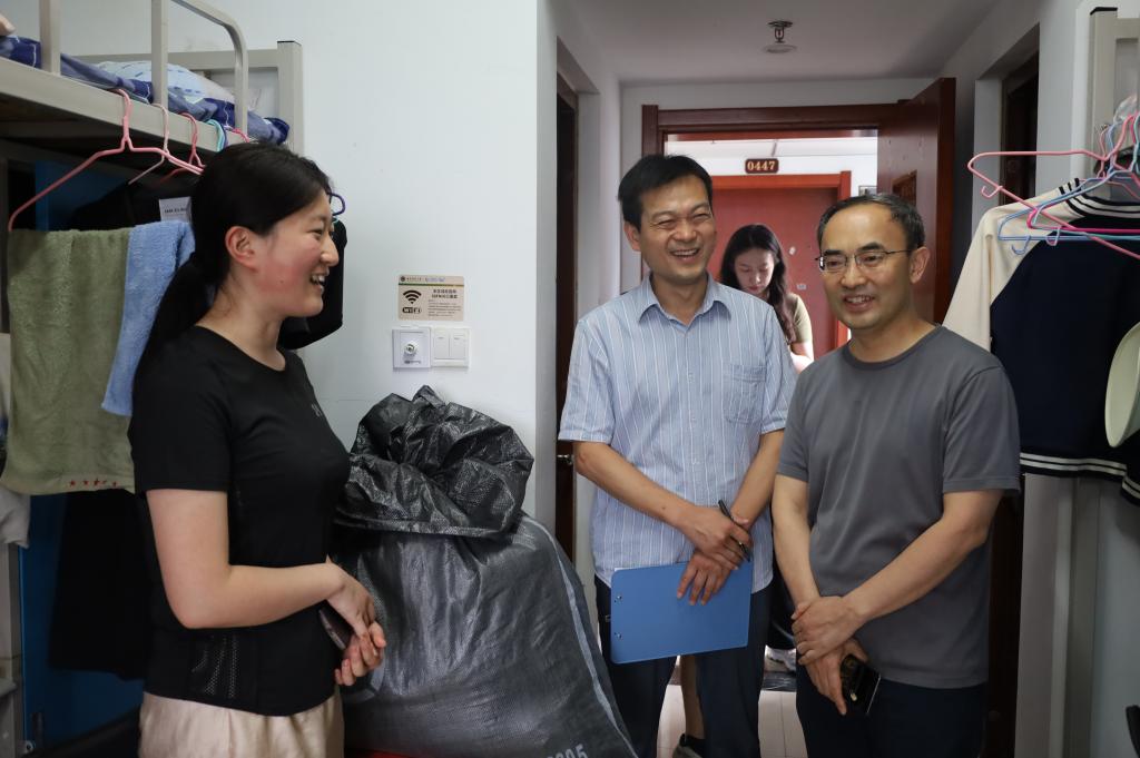 为加强毕业生文明离校教育,增强快猫视频 学生的安全和环境卫生管理意识,6月19日,快猫视频 党委书记姜开勇、院长吴佩林、党委副书记王建阳、团委书记刘贤贤及毕业生辅导员走进毕业生宿舍,进行宿舍走访。