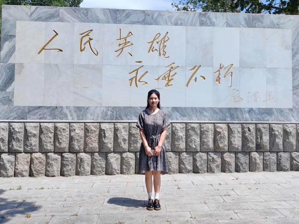 讲解员口中将士们的视死如归,不惧强敌、积极乐观向上的革命精神,一次又一次令队员们感动。烈士墓碑正面写着人物姓名,职位,纪念碑所立时间,背面写着人物生平事迹。抬头瞻仰碑文,更加感受到他们的伟大。“红花无情笑东风,青山有幸埋忠骨。”革命先烈们与青山同在,与大地永存。生命已逝,精神永存。没有共产党就没有新中国,没有革命先烈就没有新中国。实践队员们看着烈士陵园前迎风飘扬的红旗,难以言喻的感受充斥心中。是无数的先烈们用血肉之躯让这红旗得以飘扬在天空之上,是无数先烈们抛家舍业让现在的人有了成家立业的机会,是先烈们勇敢无畏地同侵略者斗争,忍受严刑酷罚,不屈服,不畏惧,让今天的中国能够昂首挺胸地站立着。