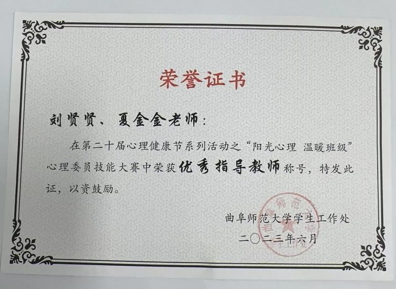 为促进大学生更好地发挥自助、互助的积极性和主动性,5月20日至27日,我校成功举办了“阳光心理,温暖班级”心理委员技能大赛,快猫视频 学子积极参与并荣获一等奖。快猫视频 刘贤贤、夏金金老师获评“优秀指导教师”荣誉称号。