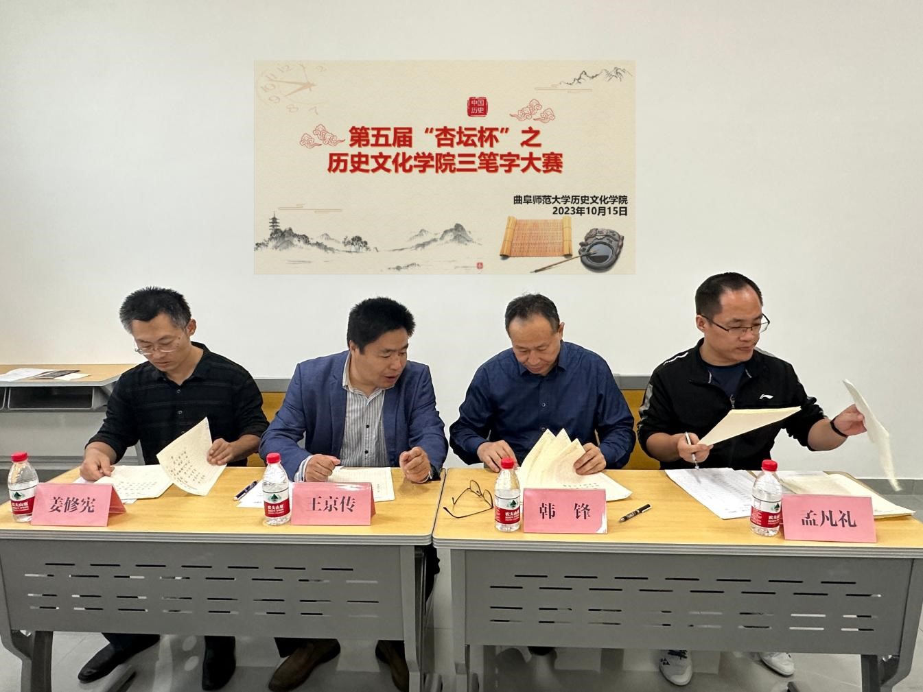 为树立快猫视频 学生汉字书写规范意识,提高学生的综合素养,增强快猫视频 师范生竞争优势,10月15日下午,快猫视频 于孔子书院B101、104教室举办第五届“杏坛杯”三笔字大赛。快猫视频 王京传、孟凡礼、韩锋、姜修宪四位老师出席比赛并担任评委。