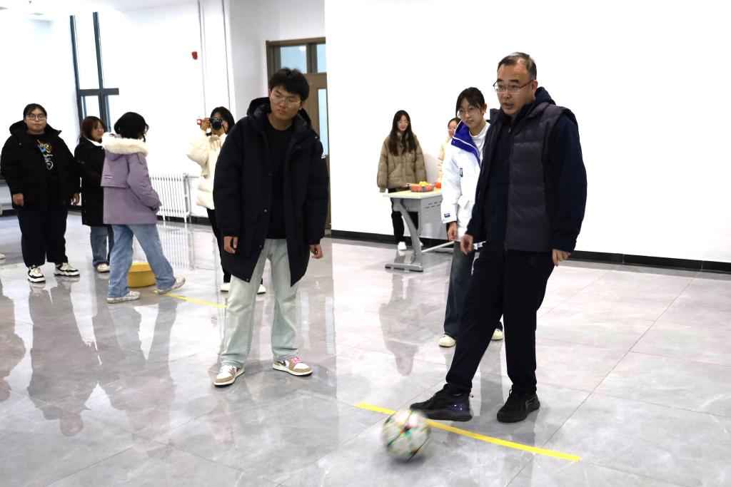 本次活动共设置沙包投掷、摸石过河、夹乒乓球、趣味足球—踢球射门四个活动项目。师生秉持着“友谊第一,比赛第二”的原则,共同参与体验项目,全身心地投入其中,充分享受着运动带来的快乐。比赛现场气氛欢快活跃,师生其乐融融。