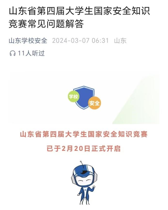 为深入贯彻总体国家安全观,增强大学生的国家安全意识和素养,提高维护国家安全的自觉性和主动性,快猫视频 于2024年3月积极组织学生参与了“山东省第四届大学生国家安全知识竞赛”活动。