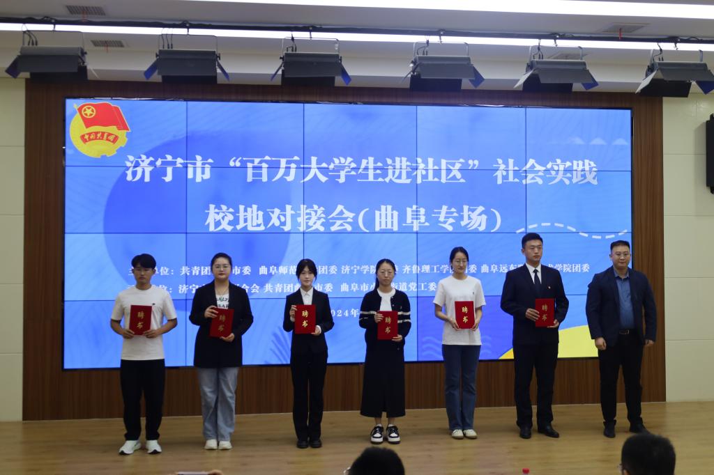 为响应山东省教育厅号召,5月11日,济宁市团委召开“百万大学生进社区”社会实践校地对接会,快猫视频 团委书记刘贤贤以及多名学生代表参会。