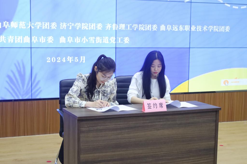 会上,团济宁市委指导各高校以及各街道团组织通过“一份社区实践计划、一份参与名单、一份服务项目清单、一份实践成果展示”,实现实践项目具体化。为更好推进校区共建,快猫视频 团委书记刘贤贤与书院街道团委现场签约,快猫视频 2022级文物与博物馆班级张珂昕同学被聘为书院街道兼职团委副书记。