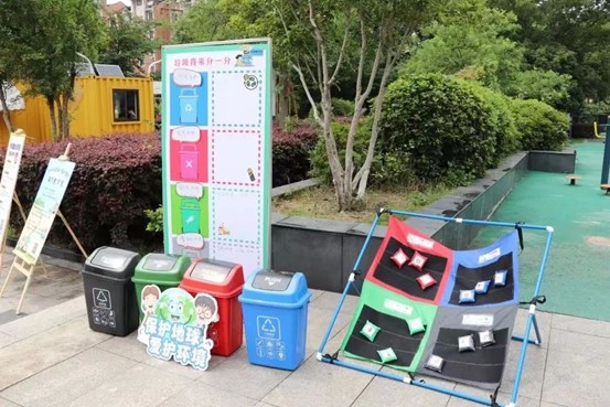 为了提高活动的趣味性和居民的参与度,实践队还精心设计了一些互动游戏和活动。在广场中央的展示台前,队员们设置了垃圾分类投放游戏,居民们可以通过实际操作,将不同种类的垃圾正确投放到相应的垃圾桶中。这个游戏不仅增加了活动的趣味性,还让居民在实践中巩固了垃圾分类的知识。