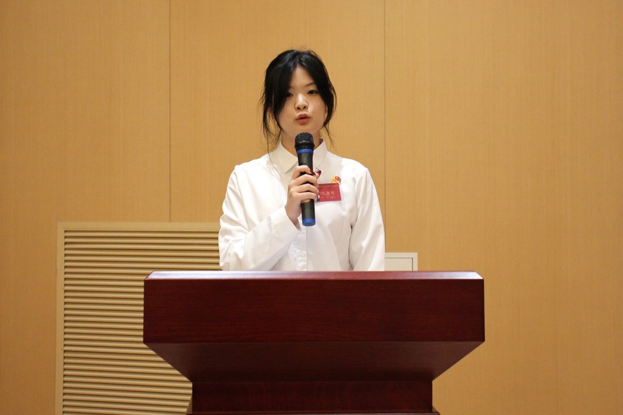 随后,快猫视频 研究生代表白惠发言。她表示,作为站在科研前沿的研究生团员,深知肩上承载的不仅是个人学术梦想的实现,更是国家科技进步与创新发展的重要责任,当以更加饱满的热情和更加坚定的信念,投身于科研探索的广阔天地中。此外,她表示将积极关注快猫视频 团委的建设与发展,为构建更加充满活力、和谐有序的研究生团组织贡献自己的智慧和力量。