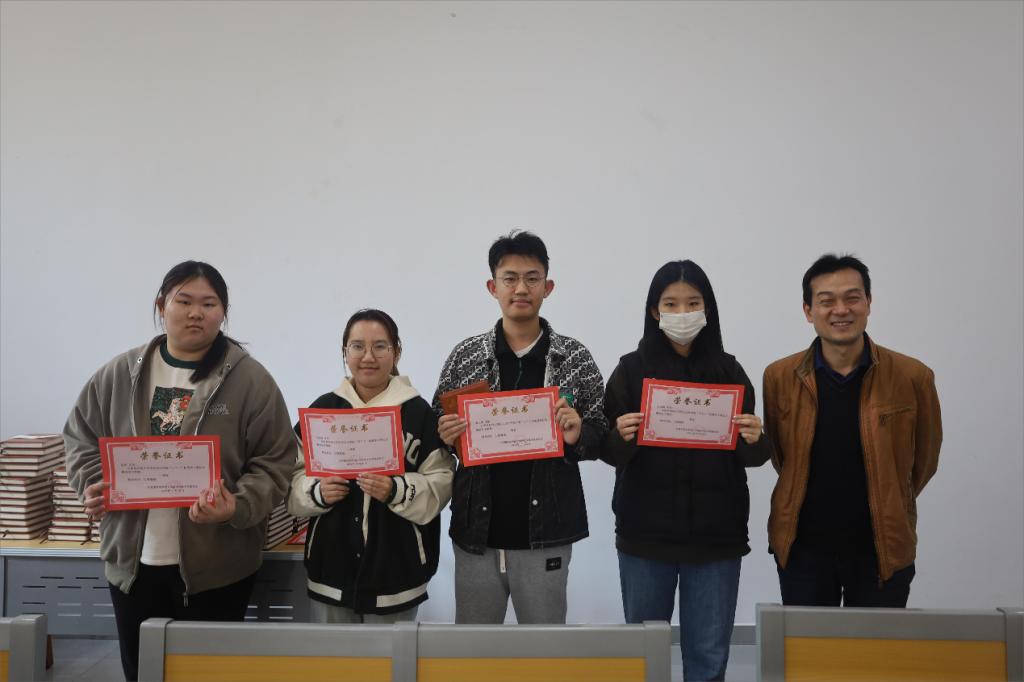 会上,夏金金老师首先公布评委老师评选出的获奖学生名单,三位评委老师依次为2022级最美笔记大赛获奖同学颁发证书并合影留念。随后,三位老师为2023级各班学生代表颁发“五个十”拓展学习计划学习记录本,并寄予厚望。会议最后,牟学林老师向学生强调了“五个十”拓展学习计划的具体内容和重要意义,鼓励学生具备认真严谨的学习态度并付诸到实际行动中。