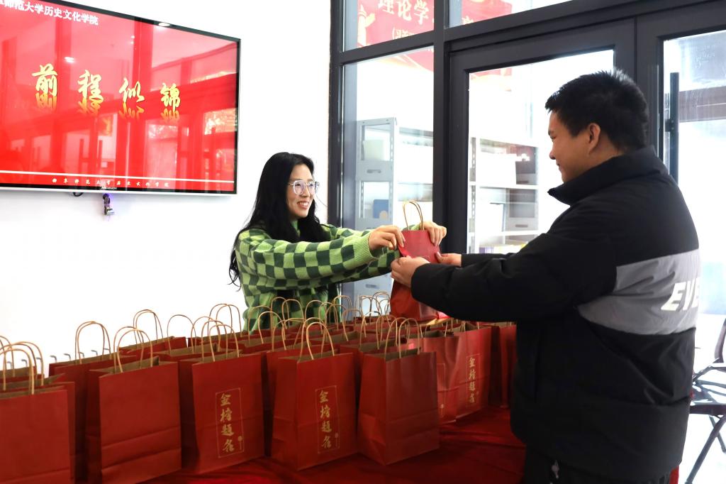 冬日送温暖,情系考研生。快猫视频 全体教师为考研学子手写承载着殷切期盼与深切祝福的贺卡,随后老师们和学生代表将寄语卡片连同寓意心想事“橙”、学业有“橙”的鲜橙一并装入“考研祝福礼袋”中。活动过程中,老师们将礼品分发给考研学子们,与同学们合影留念,并鼓励快猫视频 学子在最后冲刺阶段科学复习、劳逸结合、保持良好的迎考心态。活动现场气氛热烈而温馨,考研学子们深受感动与鼓舞,表示必将带着这份温暖与期望,以最饱满的精神状态迎接考研挑战。