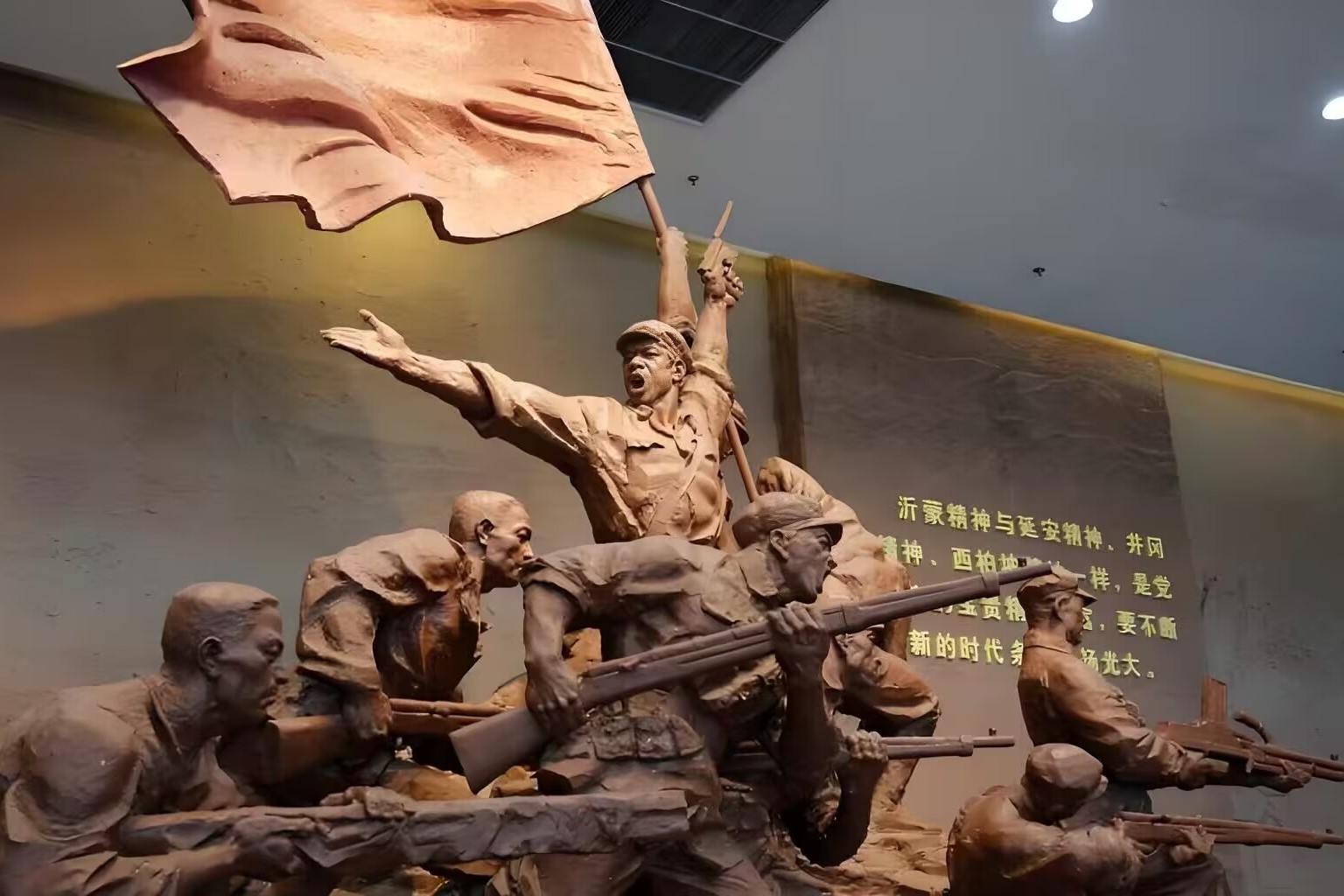 活动当天,实践队员早早来到沂蒙革命纪念馆前。纪念馆前的广场上,矗立着一组庄严肃穆的雕塑。雕塑生动地刻画了沂蒙军民一家亲的场面,它不仅展现了军民鱼水情的深厚情谊,更展现了人民对美好生活的期望。实践队员走近雕塑,仔细端详着每一个细节,仿佛能感受到雕塑中所传递出的力量与信念。
