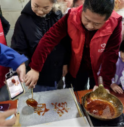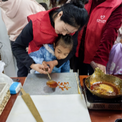 为丰富居民生活,弘扬中华优秀传统文化,加强社区文化建设,提高社区青少年对非遗文化的认识。1月21日,快猫视频 “服务社区走基层,青春聚力正当时”社会实践队于联合社区开展“糖画绘童趣,福字凝温情”活动。