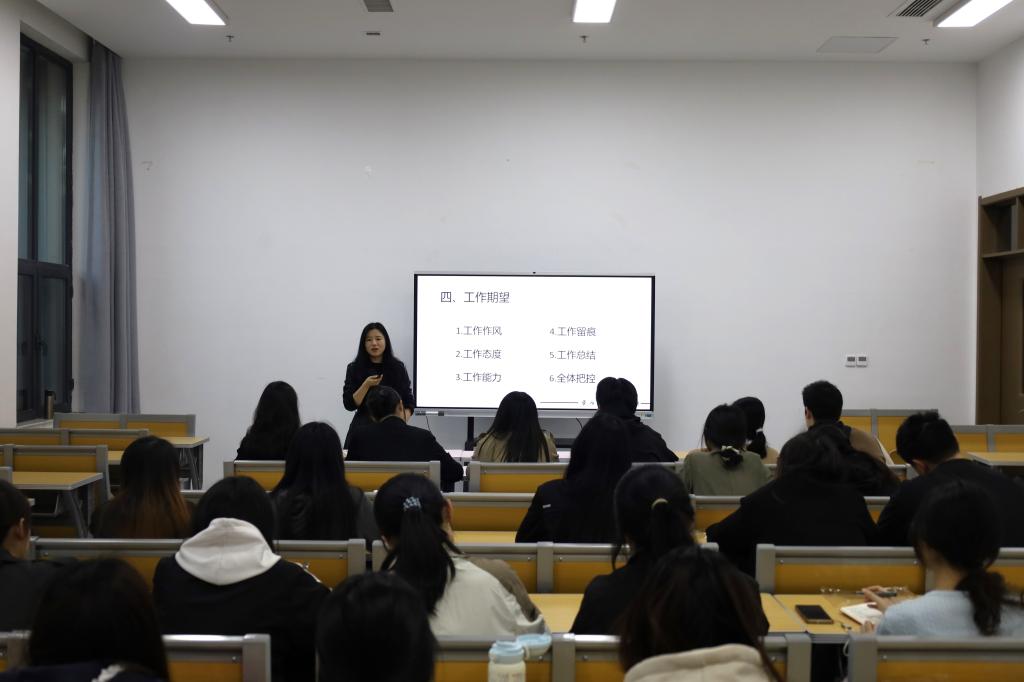 本次学生干部成长论坛,刘贤贤就工作作风、工作内容、工作方法的规范和管理发表意见,向各部门成员分享了自己在学院日常工作里积累的感悟与经验。