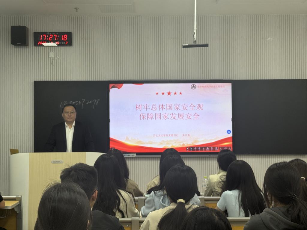 为筑牢思想根基,深化同学们国家安全意识,4月15日下午,我院党委书记姜开勇走进课堂,为2023级“杏坛学堂”历史学基础学科拔尖人才培养班的同学们带来了一场别开生面的思政课。课程围绕总体国家安全观展开,从多个维度深入剖析国家安全问题。