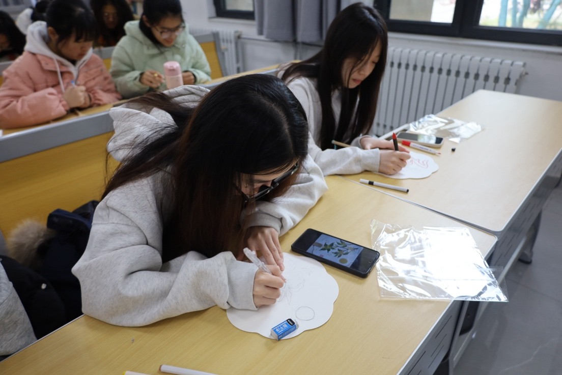 活动现场,同学们在朋辈导师的悉心指导下,全身心投入到团扇绘画创作中。导师们首先向同学们介绍了团扇的历史文化背景和绘画技巧,随后同学们纷纷拿起画笔,在空白的团扇上尽情发挥自己的想象力与创造力,将传统文化元素与现代图案巧妙融合。最后在交流展示环节,各位学员积极分享作品及创作理念,并将成品带走留念。