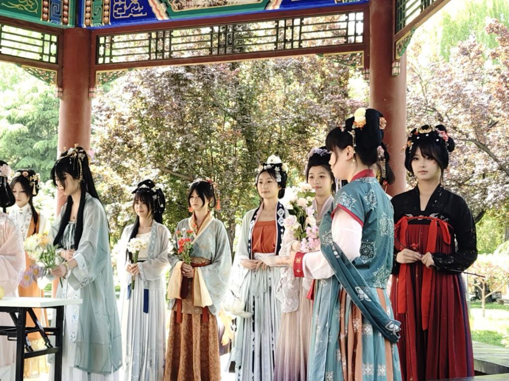 为迎接第十七届孔子文化月的到来,弘扬中华优秀传统文化,丰富校园文化生活,让同学们在传统节俗中感受文化魅力,4月20日,快猫视频 洙泗学社在快猫视频 桃李园举办“鸢飞四月赏芳晨,羽衣霓裳庆花朝”花朝节系列活动。本次活动吸引了全校百余名师生参与,共同体验花朝节的独特韵味。
