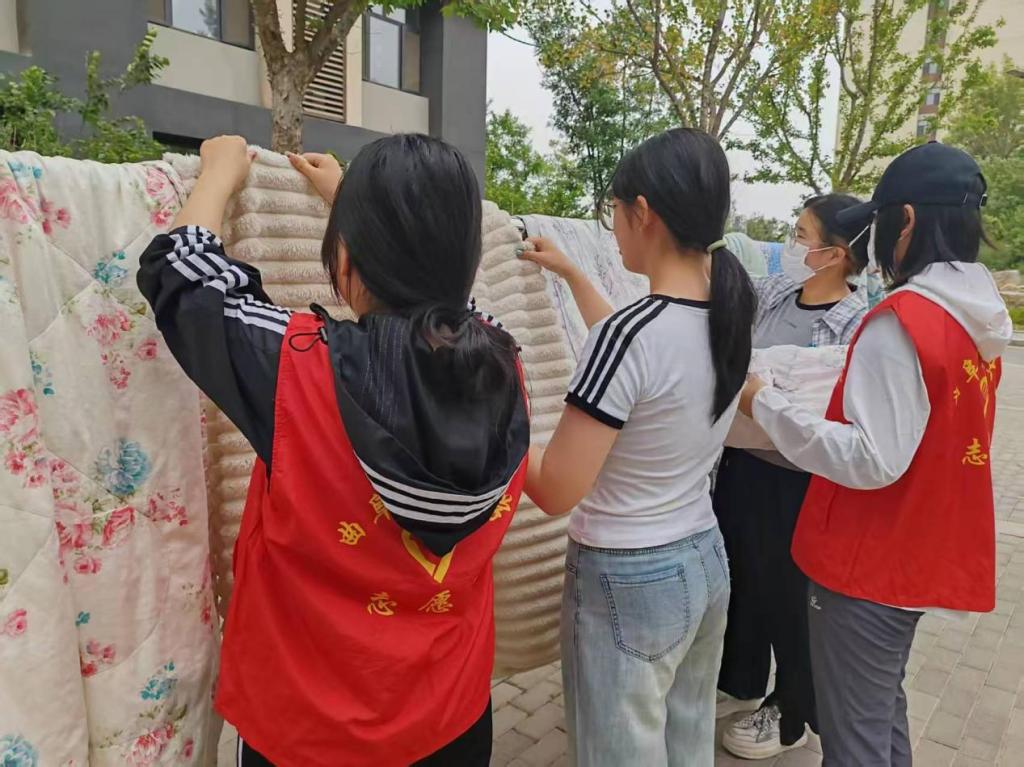 为切实解决同学们公共晒晾区“一位难求”的困扰,6月7日,快猫视频 学生会于5号楼和6号楼之间开展“晒被日”暖心服务活动,着力为同学们营造规范有序的晾晒环境。