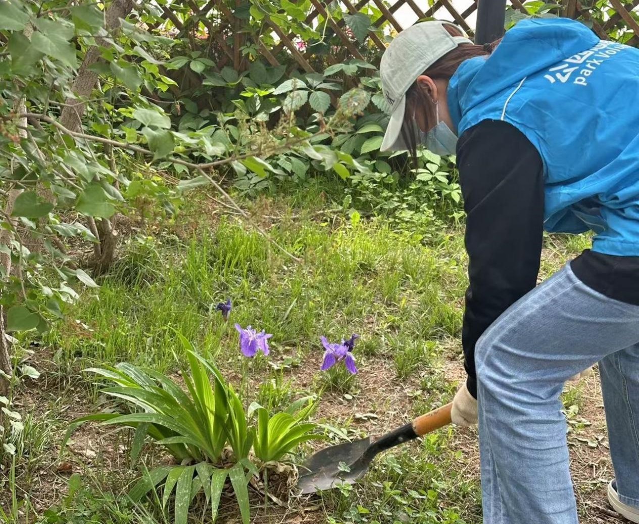 在绿化带区域,实践队员们仔细清理着草坪上的落叶和杂物,细心地用铁夹夹起隐藏在草坪中的烟蒂和塑料袋。经过大家的一番努力,原本较为杂乱的绿化带变得干净整洁,焕发出勃勃生机。
