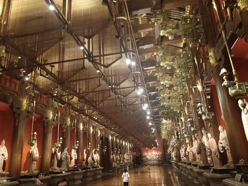 作为实践的核心环节,队员们系统探访了尼山圣境的重要建筑——大学堂。在集贤厅,巨幅顶画《天开文运》所展现的天地人和之境,这引发队员们对儒学宇宙观的深思。缓步穿行于七十二贤廊,两侧栩栩如生的贤士群雕与记录其言行的竹简,构筑起一条鲜活的历史长廊。队员们携带《论语》等典籍,在相应贤士像前驻足研读、体悟。步入“仁厅”,其内以宏大艺术装置阐释“仁者爱人”的精髓,一种直击心灵的震撼,让抽象哲理瞬间拥有了可感可触的温度与磅礴力量,让队员们对“仁”的理解更加具象深刻。