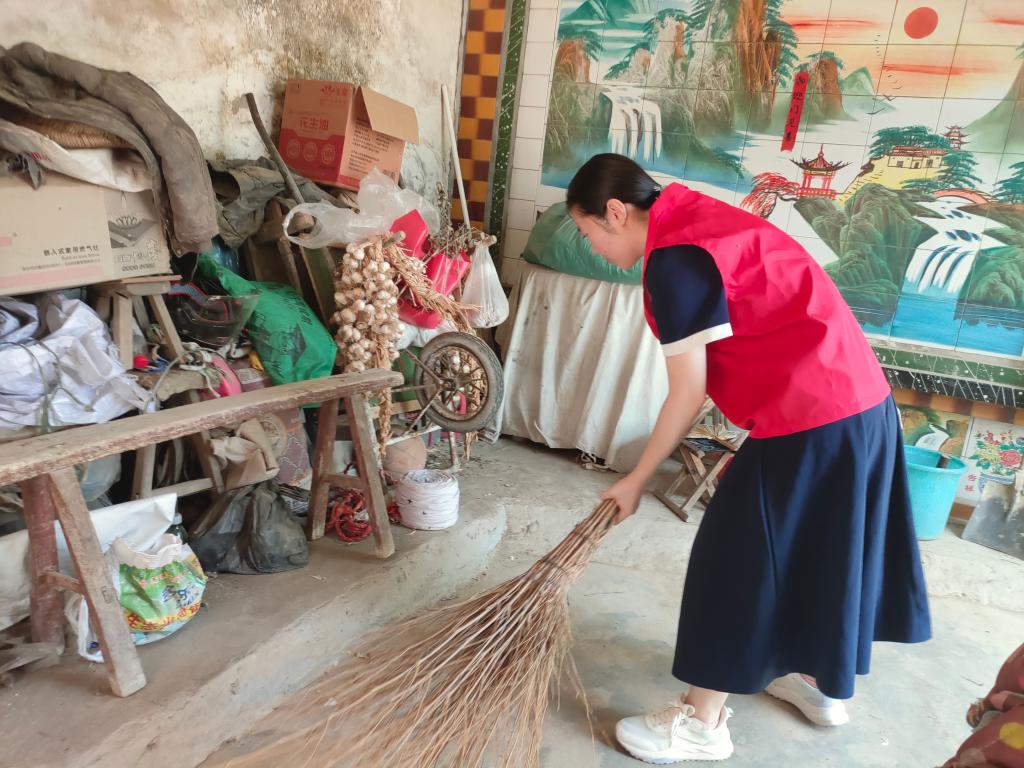 “比破旧更让人揪心的,是老人对居住环境的无力感。”实践队员说到。走进独居老人的家中,蛛网在房梁结成了片,墙角堆积的杂物几乎堵住了窗户,发霉的麦秸秆、破旧的麻袋和看不清原貌的塑料瓶挤在一起。从各负责人口中了解到,由于大部分老人身体有疾病,比如腰间盘突出,类风湿等行动不便,儿女又常年在外打工,于是家在岁月侵蚀中渐渐失去了整洁的模样。为了给老人们营造整洁舒适的居住环境,当地政府联合志愿者开展的“适老化清洁行动”,定期为老人进行简单的大扫除。