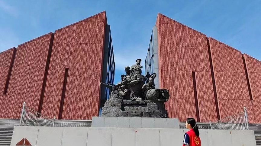 抵达孟良崮战役遗址后,实践队率先开启系统研学之旅。遗址内的纪念馆、烈士陵园、战役遗址区与雕塑园,如同四座串联历史的丰碑,全景式展现着1947年那场惊心动魄的战役画卷。在“战役历程展区”,队员们沿着时间脉络,逐一驻足于作战地图、敌我兵力部署图前,通过讲解员的细致讲解,理清了华东野战军在陈毅、粟裕指挥下,从战略隐蔽到分割包围,最终歼灭国民党王牌七十四师的关键节点。在“英雄事迹展区”,除了广为人知的指挥员决策故事,无数基层战士的战斗细节更让队员们动容:有的战士在弹药耗尽后与敌人展开白刃战,有的医护人员冒着炮火在阵地前沿抢救伤员,这些鲜为人知的故事让历史变得更加立体鲜活。
