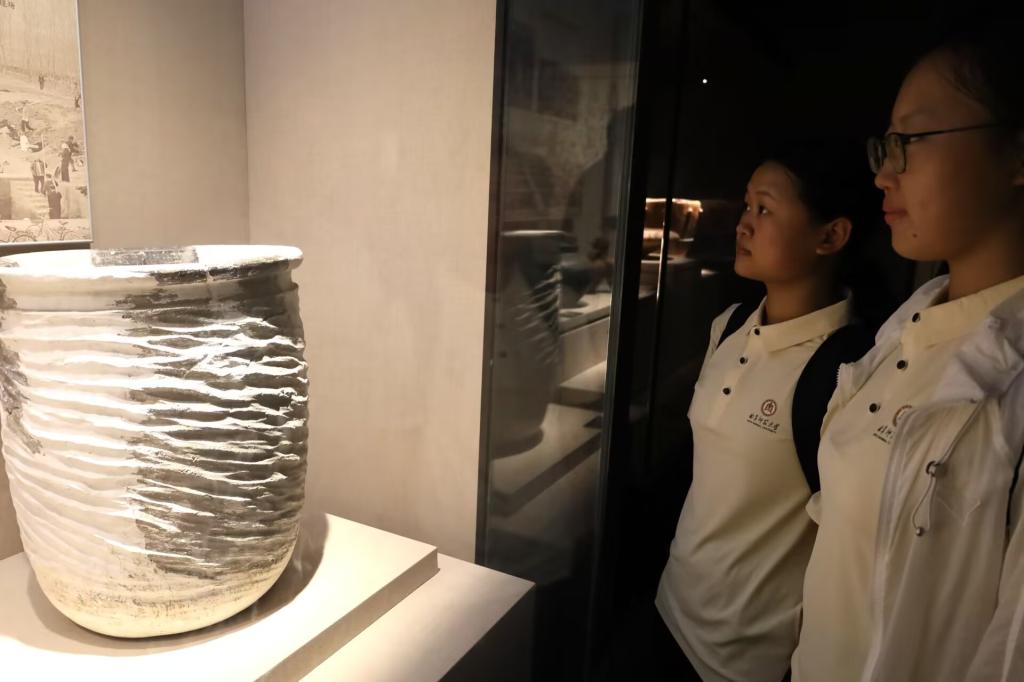 实践队员们首先参观了“古彭千秋——徐州历史文化陈列”展厅。这里通过大量的文物、图片和多媒体展示,生动地呈现了徐州从远古时期到明清时代的历史变迁。从新石器时代的石器工具,到商周时期的青铜器,再到秦汉时期的精美玉器和陶俑,每一件文物都在诉说着一段独特的历史故事。实践队员们认真观察,深深折服于古人的智慧和创造力。