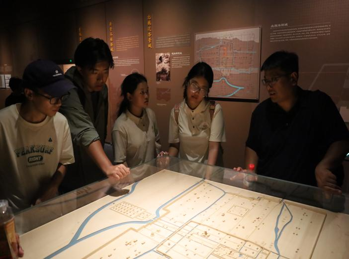 7月15日,实践队员在指导老师带领下抵达目的地。初见汉魏洛阳故城,残垣断壁间沉淀的千年气息扑面而来,瞬间拉近了与历史的距离。在博物馆志愿者引导下,队员们先后深入宫城遗址、永宁寺遗址和太学遗址,开启沉浸式考古研学。