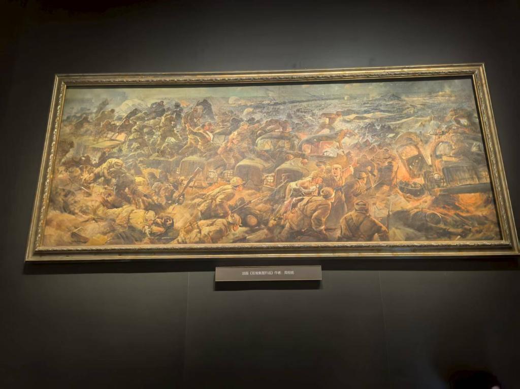 随后,实践队员们走进淮海战役纪念馆展厅。一幅气势恢宏的油画《攻克黄维兵团》映入眼帘,画面中硝烟弥漫,战士们奋勇冲锋,生动展现了淮海战役的激烈与残酷。实践队员们驻足凝视,仿佛能透过画布,感受到当年战斗的紧张氛围和革命先辈们的大无畏勇气。在讲解员的带领下,大家有序参观,从珍贵的历史文物、详实的文献资料,全方位了解淮海战役的全过程。从战役的战略谋划,到前线将士的浴血奋战,再到后方群众的全力支援,每一个故事、每一段历史,都深深触动着实践队员们的心。大家深刻认识到,淮海战役的胜利,是人民战争的伟大胜利,是革命先辈们用热血和生命铸就的不朽功勋,体会到人民群众在革命进程中发挥的巨大力量。