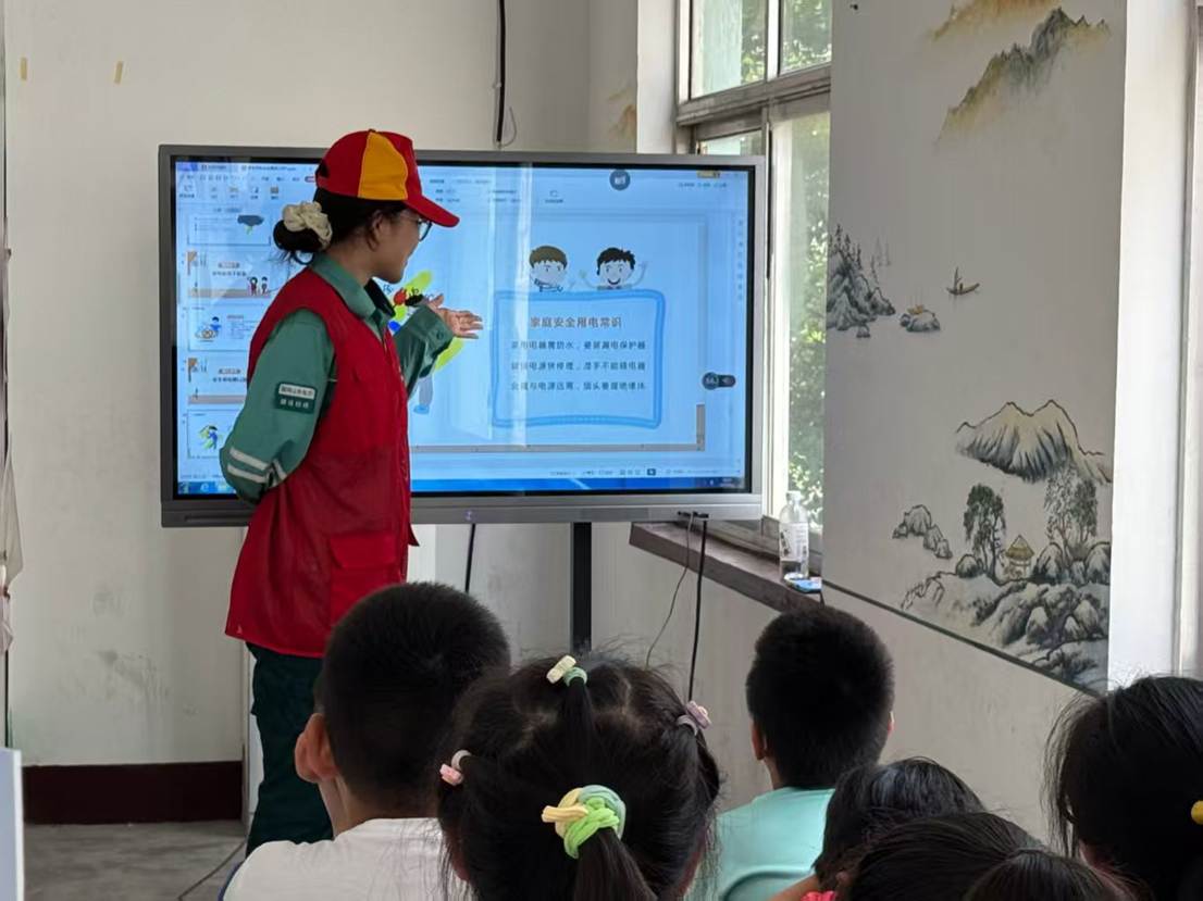 活动伊始,实践队队员走上讲台,以一段生动有趣的用电安全小视频拉开了宣讲的序幕。视频中,可爱的卡通形象和惊险刺激的用电事故场景,瞬间吸引了孩子们的注意力。随后,队员们用通俗易懂的语言,结合日常生活中的实际案例,向孩子们讲解了安全用电的基本知识,如如何正确使用电器、如何避免触电事故等。队员们还特别强调了夏季用电的注意事项,提醒孩子们在享受清凉的同时,也要注意用电安全。