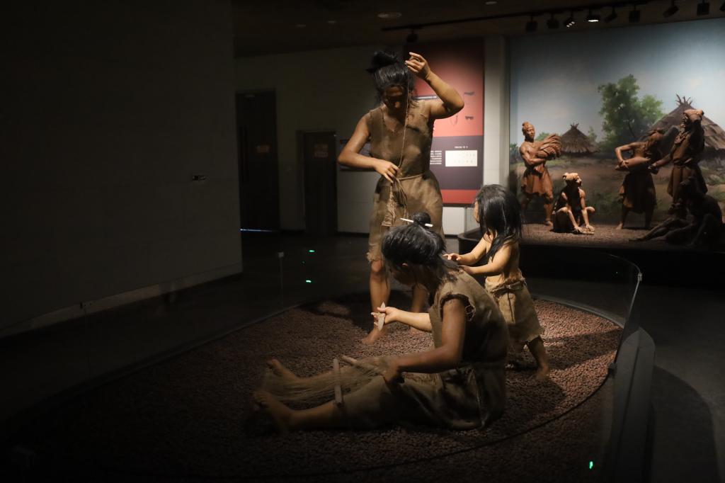 展区的墙面配有图文展板,详细介绍了工具的制作工艺与使用场景。例如,石器制作中的“打制法”与“磨制法”对比图示,清晰展示了从粗糙的石料到实用工具的转变过程。此外,互动屏幕播放着先民使用工具狩猎、农耕的动画场景,让参观者直观感受工具在原始生活中的重要性。