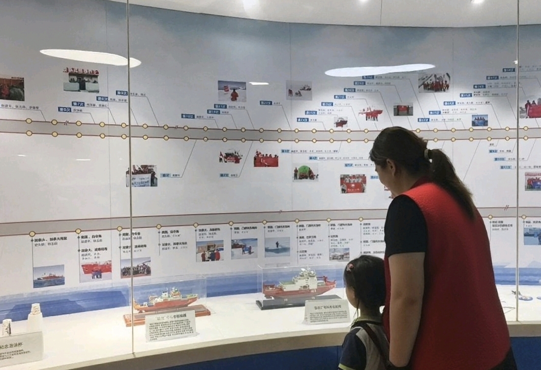 那些极地微生物图片,清晰呈现了各种形态独特的微生物,有的如星点散布,有的似丝线缠绕,直观展现了这些微小生命在极端环境中的存在状态。旁边的分级过滤设施则通过层层递进的结构设计,生动演示了如何从复杂的极地样本中分离出微生物。团队成员以此为依托,讲解了微生物的生存特性 —— 它们如何适应严寒,如何在冰封环境中获取养分,以及在极地生态系统中扮演的重要角色。