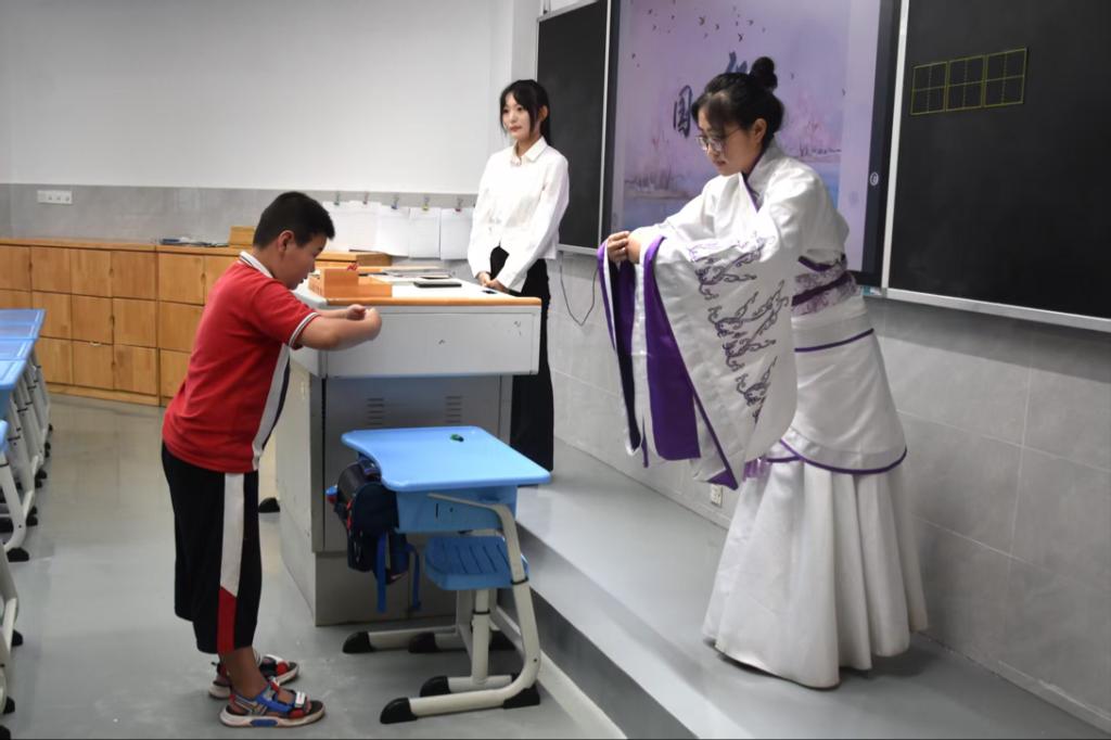 为弘扬中华优秀传统文化,增强青少年对传统礼仪的认知与体验,9月12日,快猫视频 “国学小课堂”实践队于快猫视频 附属小学开展传统礼仪实践教学活动。旨在通过理论讲解与实践操作相结合,让同学们沉浸式感受中华礼仪文化的深厚底蕴与独特魅力。