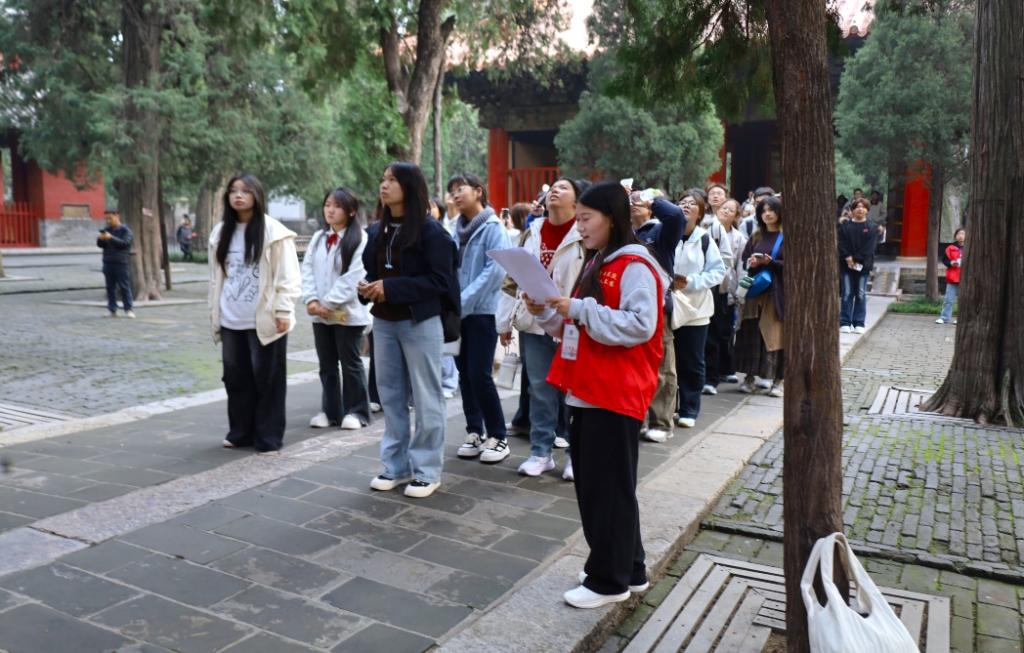 活动当天,新生以班级为单位划分小组,跟随校园导游,从“万仞宫墙”到“大成殿”,从“奎文阁”到“金声玉振”,同学们穿行于古建之中,聆听衍圣公世家传承故事,体悟儒家传统与君子之风。最后,同学们在导游的带领下有序返回校内。