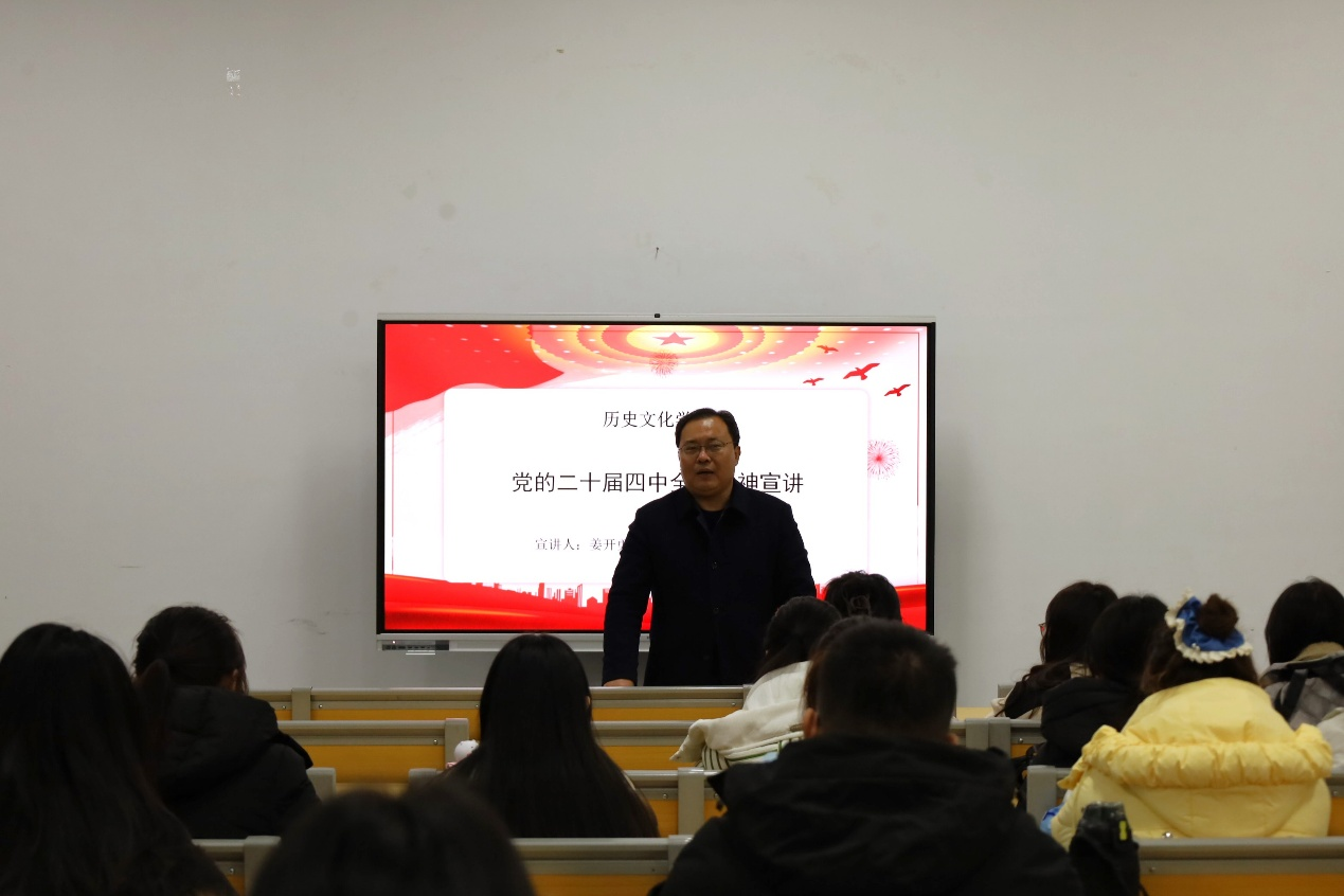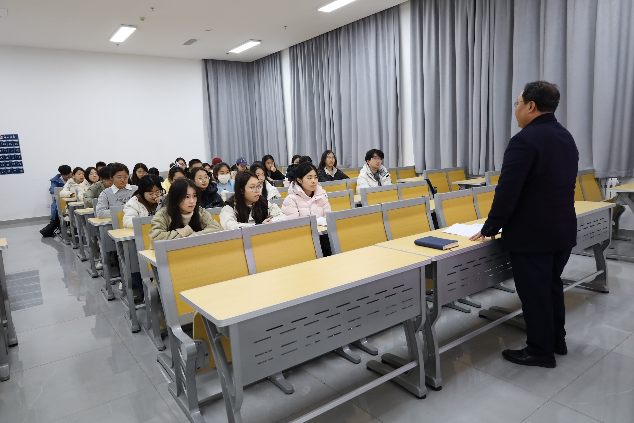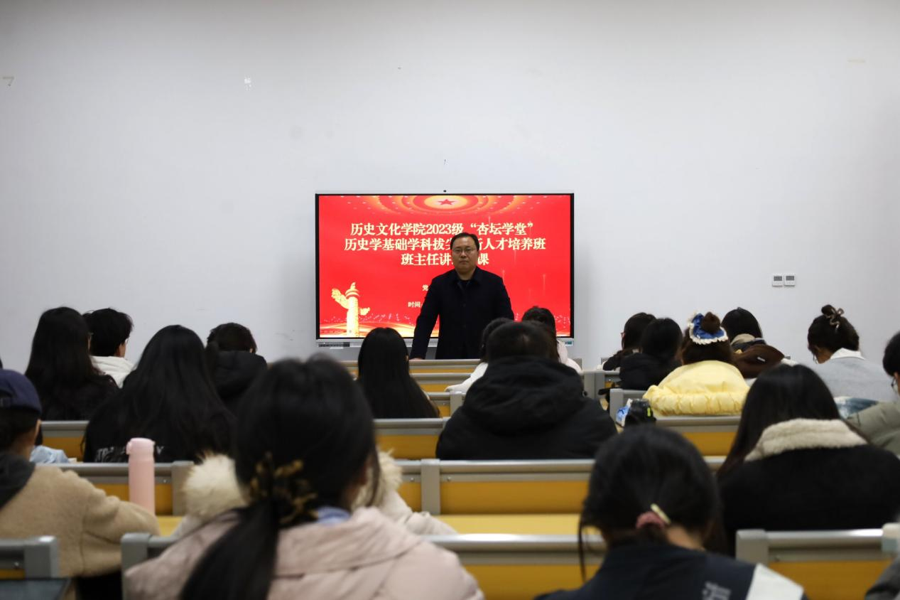 12月8日下午,快猫视频党委书记姜开勇于孔子书院B106给联系班级讲思政课,2023级“杏坛学堂”历史学基础学科拔尖创新人才培养班全体学生参加。