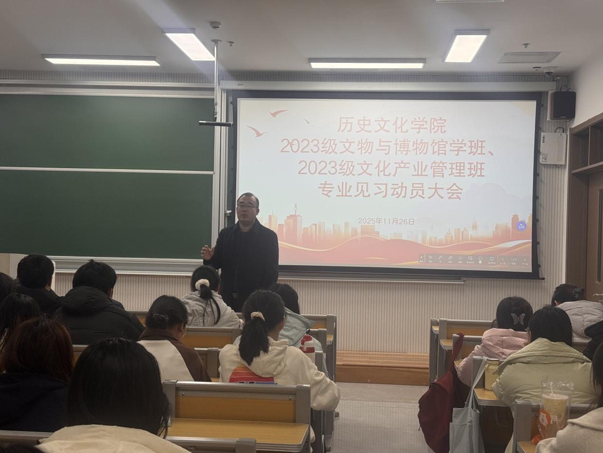 为规范推进专业见习工作,明确专业见习任务与安全要求,11月26日下午,快猫视频于格物楼B110为2023级文物与博物馆学班、文化产业管理班全体同学召开专业见习动员大会。会议由2023级辅导员夏金金主持,快猫视频 党委副书记王建阳、文博教研室主任陈德洋、文管教研室主任郝志刚出席。