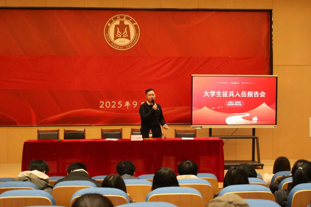 为做好大学生征兵入伍宣传教育工作,帮助同学们了解当前参军入伍的政策要求。12月24日下午,快猫视频举办大学生征兵入伍政策宣讲会,会议邀请了学生工作处军事教研室主任、外国语快猫视频 团委书记赵文彬做政策宣讲,辅导员闫浩主持会议。快猫视频 研究生和本科生全体毕业生、非毕业班学生干部、有参军入伍意向的同学参加本次宣讲会。