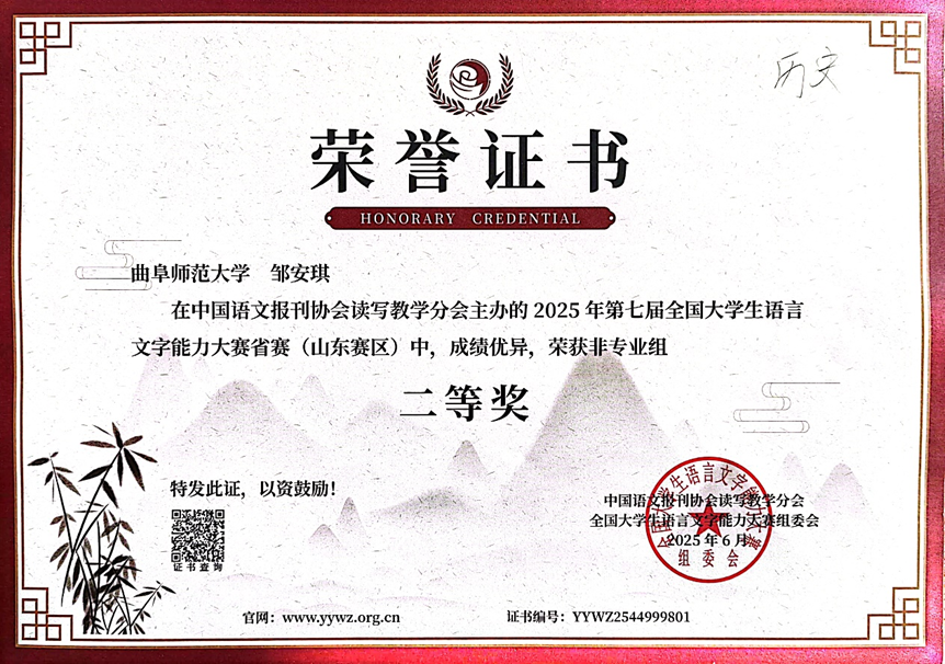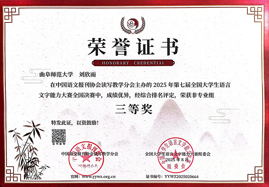 全国大学生语言文字能力大赛是检验高校学生语言文字素养的重要赛事,旨在传承中华优秀语言文化,提升大学生的语言文字应用能力、审美能力和创新能力。此次大赛斩获佳绩,既是对快猫视频 语言文字教学成果的肯定,也为深化师范专业人才培养、推动中华优秀语言文化传承创新积累了经验。