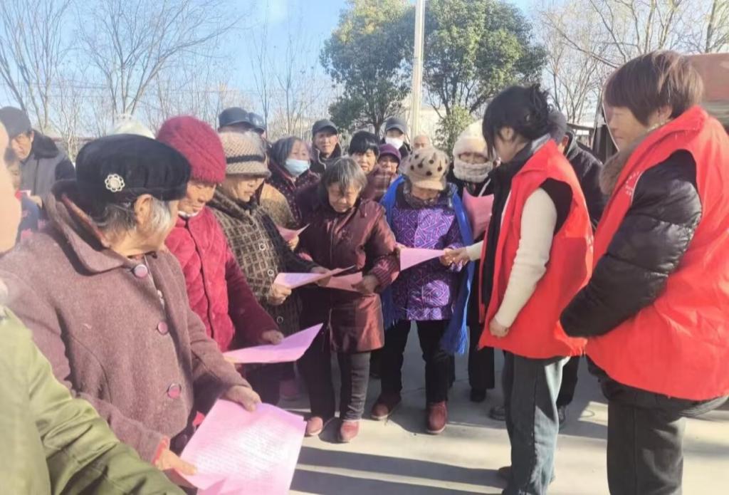 台下,老党员们听得专注,年轻居民则用手机记录下精彩片段,分享到社区微信群中。这场没有演讲稿、没有华丽舞台的分享会,让红色基因在代际传递中扎根生长。在政策宣传的流动展台前,志愿者们用手绘海报和通俗讲解,向人民群众普及冬季防火、反诈防骗等安全知识。他们协助社区工作人员完成独居老人安全台账更新,为后续精准帮扶提供数据支撑。