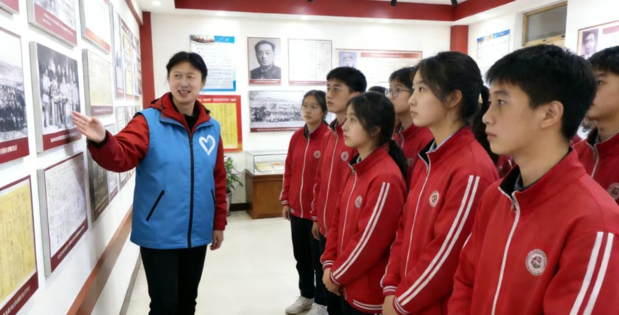 随后,在学校德育处老师的带领下,实践队成员前往校史馆参观学习。校史馆内,图文资料、实物展品、影像片段系统梳理了平原一中的发展历程、办学成就、知名校友事迹及校园文化建设成果。讲解老师按时间脉络,详细介绍了学校从创办至今的重大事件、师资队伍建设、教学成果突破等内容,重点讲述了学校在历史积淀中形成的优良校风与育人理念。实践队成员认真聆听讲解,驻足查看每一件展品、每一幅图片,不时驻足记录关键信息,主动向讲解老师询问校史中的细节问题,深入了解母校的发展变迁与精神传承。参观过程中,队员们始终保持严谨认真的态度,自觉维护校史馆秩序,通过展品与历史对话,进一步明晰了母校的办学底蕴与育人初心。