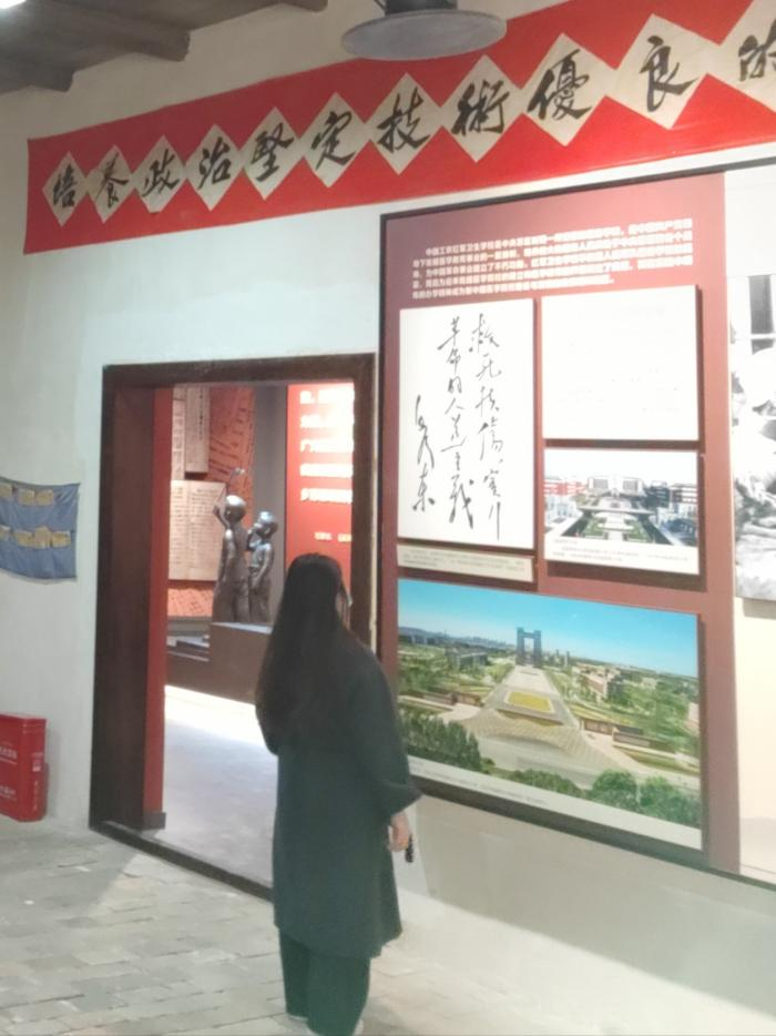 随后,实践队深入旧址群,对中华苏维埃共和国中央革命军事委员会旧址进行了专题探访。跟随着讲解员的步伐,队员们步入庄严肃穆的院落,先后参观了当年的作战指挥室、机要通讯室及领导人旧居。在作战指挥室内,大幅的军事地图虽已褪色,但上面手工标注的行军路线与战场态势依然清晰可辨;简陋的通讯设备、手写的电文底稿,生动再现了当年信息传递的艰难与革命者的智慧。讲解员介绍,在这里曾发出过无数影响革命进程的重要指令,见证了毛泽东、朱德、周恩来等老一辈革命家运筹帷幄、决胜千里的历史瞬间。