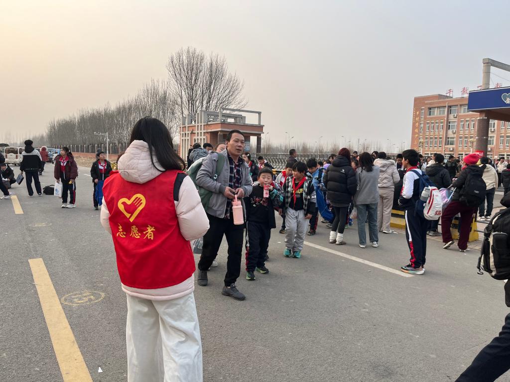 下午放学时分,实践队员协助老师们组织学生有序离校。学校门口道路相对狭窄,放学时段人车混行,存在一定安全隐患。实践队员的到来,为学校的放学秩序维护增添了力量。实践队员在校门口引导家长到指定区域等候,避免拥堵。“同学们,不要急,慢慢走,注意车辆。”实践队员一遍遍耐心提醒着。同学们整齐排列在队伍中,等待着家长的到来。