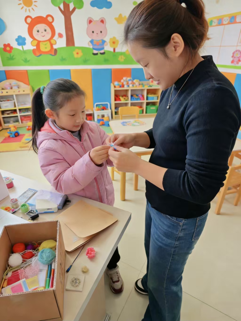 手工课堂里的“童心互动”