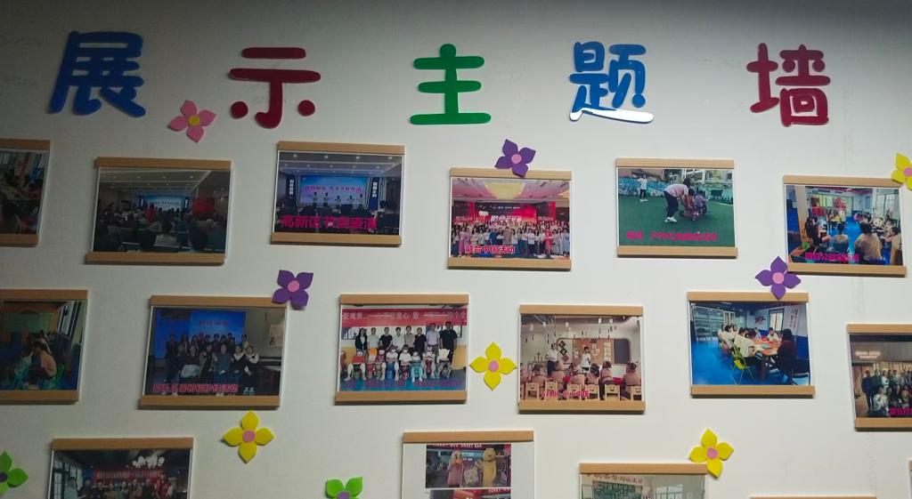色彩鲜亮的花朵装饰旁,一张张照片错落排列——在幼儿园的展示主题墙前,青衿聚力实践队的队员们驻足观看,透过照片墙触摸这里的日常温度。墙上的照片里,有孩子们户外游戏的笑闹瞬间,有活动中师生同框的温馨画面,还有公益活动里的暖心互动。“这些照片把幼儿园的生活都‘装’进去了,能更直观地感受到这里的氛围。”队员们一边浏览,一边交流着对后续实践的期待,从照片里的细节捕捉孩子们的兴趣点,为接下来的陪伴服务积累思路。“每一张照片都是一个小故事,也让我们更懂该怎么和孩子们相处。”实践队成员表示,这面照片墙不仅是幼儿园的记忆展,也成了他们提前“熟悉”孩子们的窗口。