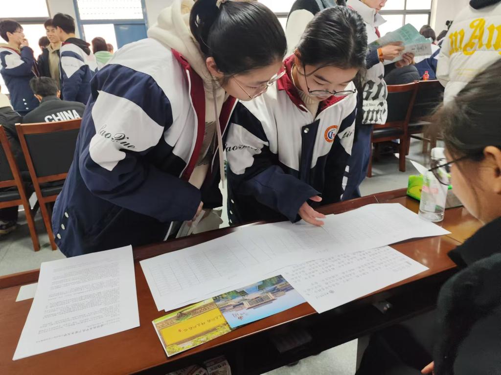 活动当天,校园明德楼会议室里摆放着一张张精心布置的“摊位”,每个摊位对应着不同的大学。摊位上,琳琅满目的大学海报令人眼前一亮,桌上还摆放有设计精美的明信片,上面印着大学校园的标志性建筑;还有独具特色的钥匙扣、书签等小物件,这些宣传资料迅速吸引了众多高三学弟学妹们的目光。