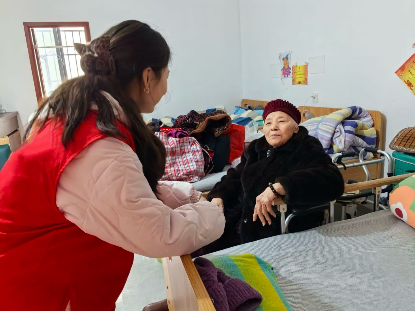 敬老爱老是中华民族的传统美德,敬老院作为老年群体的重要生活场所,承载着老人们对温暖与陪伴的期盼。为了弘扬孝亲敬老的优良风尚,丰富敬老院老人们的精神文化生活,给予他们切实的关怀与帮助,2月6日,我院“文脉赓续 史韵流芳”社会实践队走进当地敬老院,开展了一场充满爱与温暖的志愿服务活动。队员们用真诚的陪伴、贴心的照料和精彩的表演,为老人们送去了冬日里的暖阳,用青春行动践行社会责任与担当,让文脉温情在敬老爱老中赓续传扬。