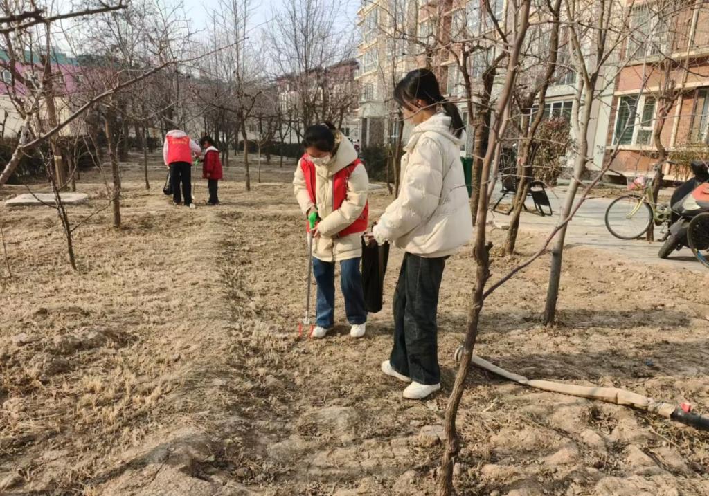 在字圣街道的多个社区内,实践队员们身着红色马甲,手持夹子、垃圾袋等工具,活跃在绿化带、楼道口和垃圾分类投放点,开展了一场“地毯式”的环境清洁行动。