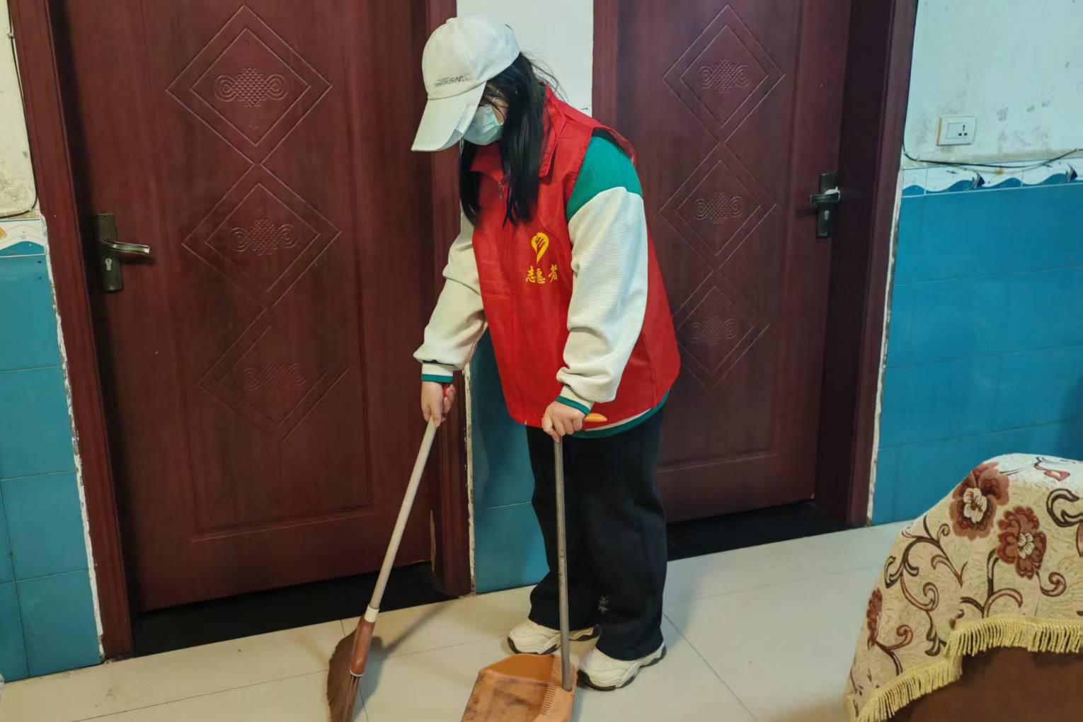 针对独居老人“家务繁重、行动不便”的难题,实践队启动“家务帮扶”专项行动,为老人提供全方位生活照料。实践队化身“贴心小帮手”,主动承担起打扫卫生、整理衣物、擦拭门窗等家务。在76岁的王爷爷家中,队员们发现老人因腿脚不便,家中角落积满灰尘,便立即分工协作:有人用扫帚清扫地面,有人用抹布擦拭家具,有人整理衣柜衣物,还有人帮忙清洗厨房餐具。经过两个小时的忙碌,原本略显杂乱的房间变得窗明几净。王爷爷握着队员的手感慨道:“孩子们来了,家里一下子就亮堂了,心里也暖乎乎的。”