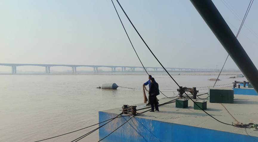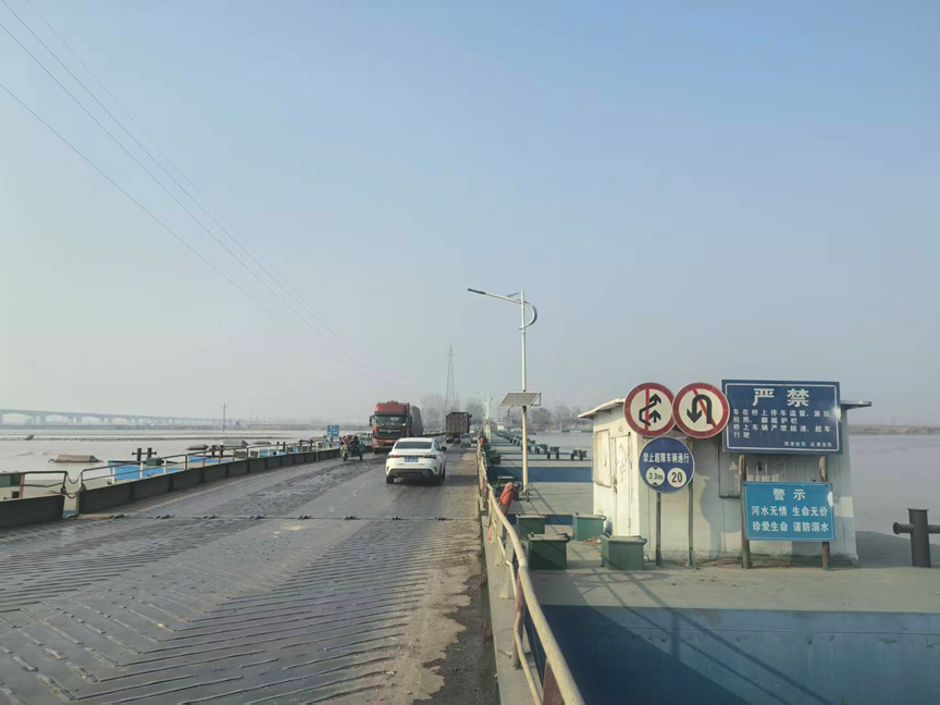 随后,实践队员来到旧城镇的旧城浮桥。这里不仅是连接鲁豫两省的重要通道,更是观察黄河与人类生活关系的鲜活样本。浮桥横亘于宽阔的黄河水面,虽不如钢筋混凝土大桥稳固,却以其灵活性适应了黄河下游游荡性河道的特征。