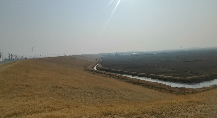 实践队员首先来到鄄城黄河堤防的重点段——营坊险工与苏泗庄管理段。站在大堤上,实践队员看到的是“临河防浪林、堤顶行道林、淤区适生林、背河护堤林”五位一体的生态绿化格局。虽然时值寒冬,林木褪去绿叶,但整齐划一的林带如列队的士兵,守护着黄河安澜。