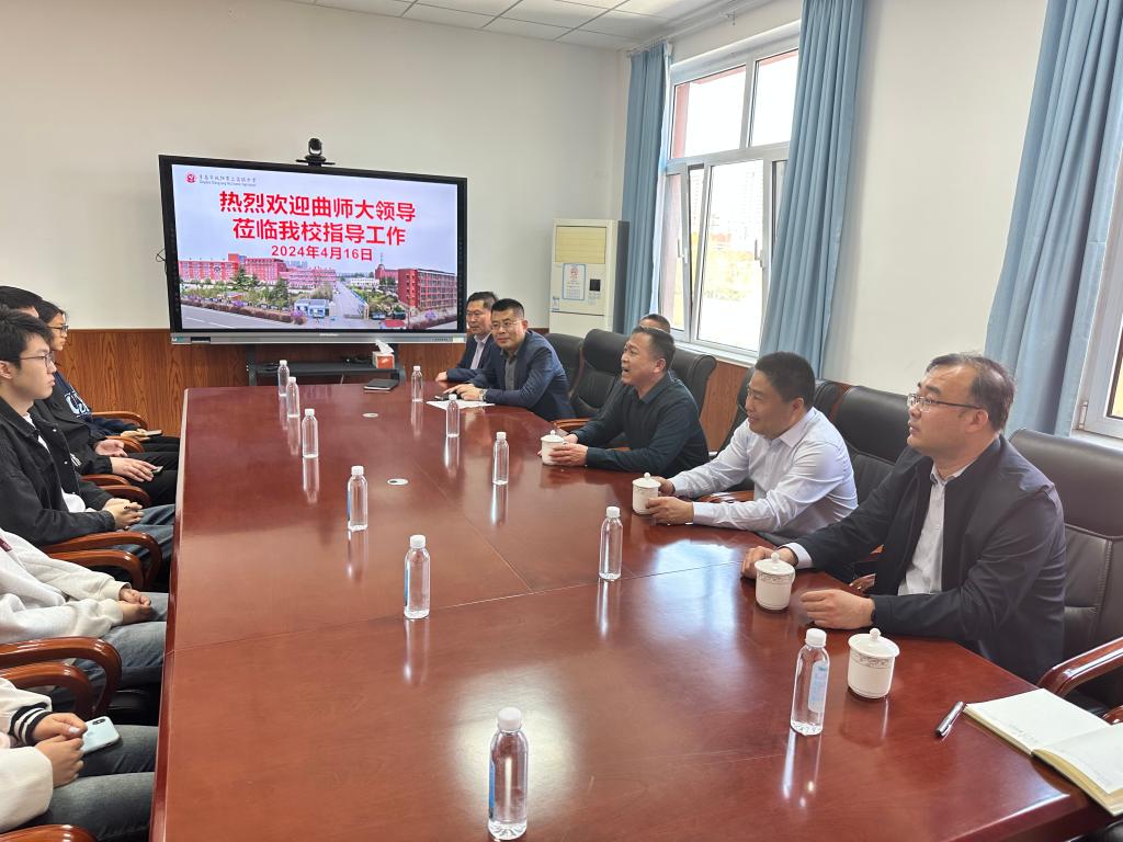 4月16日上午,快猫视频 到青岛市城阳第三高级中学洽谈毕业生就业工作,学院党委副书记王建阳、副院长王京传,毕业班辅导员董经参加活动。